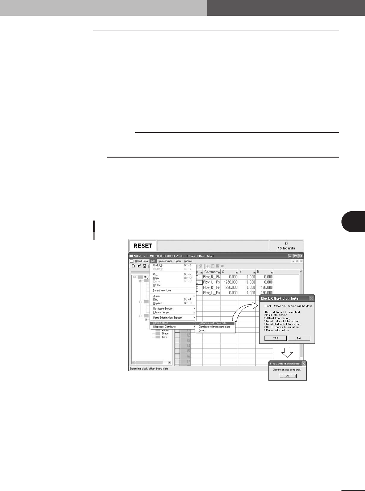 5 - 17 5 Editing the PCB data 2. Block offset 2.2 Block offset conversion and reconversion This section explains how to convert multi-block PCB data into single-block PCB data and also how to reconvert back to the origin…