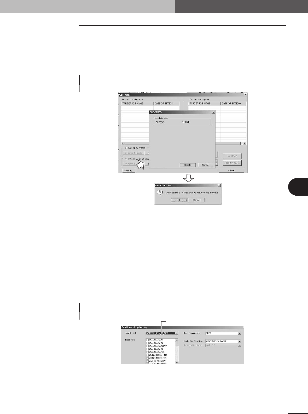 This section explains the methods for setting the conditions to optimize the PCB data.