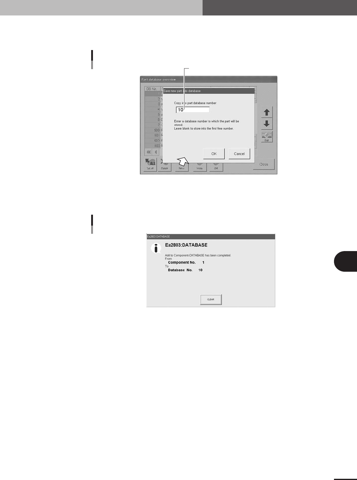 Press the [New] button and designate the database number.