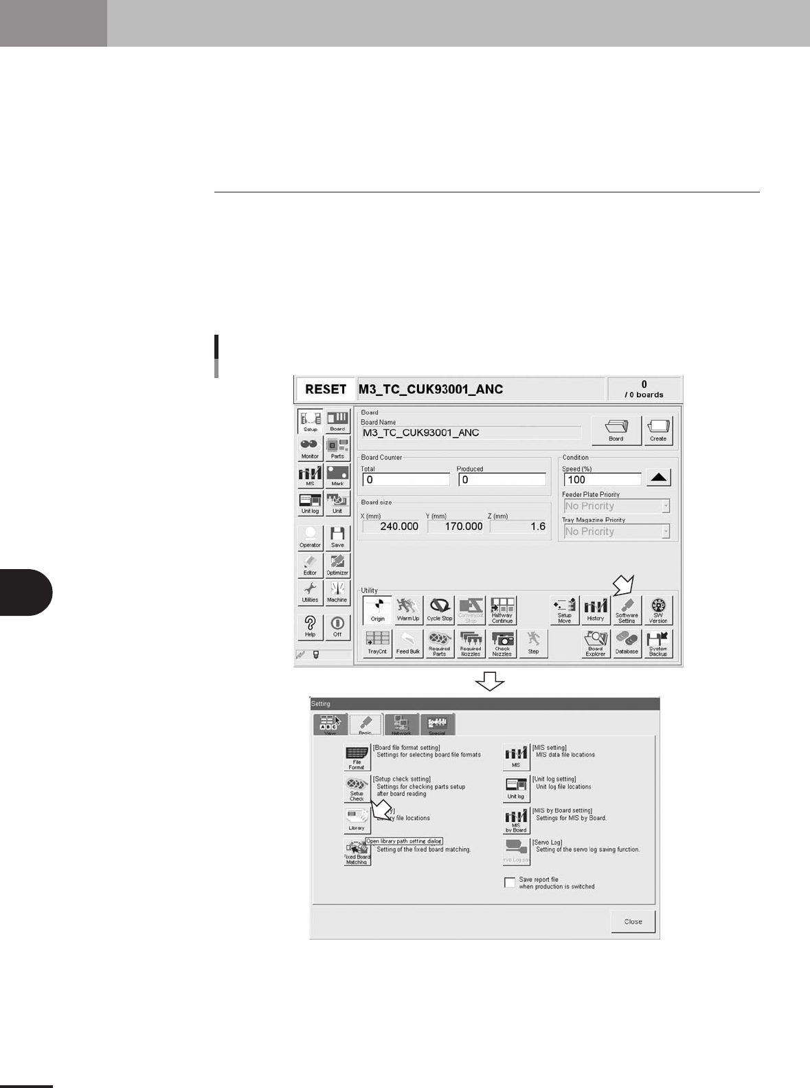 Press the [Software Setting] button on the Setup window to open the "Setting"