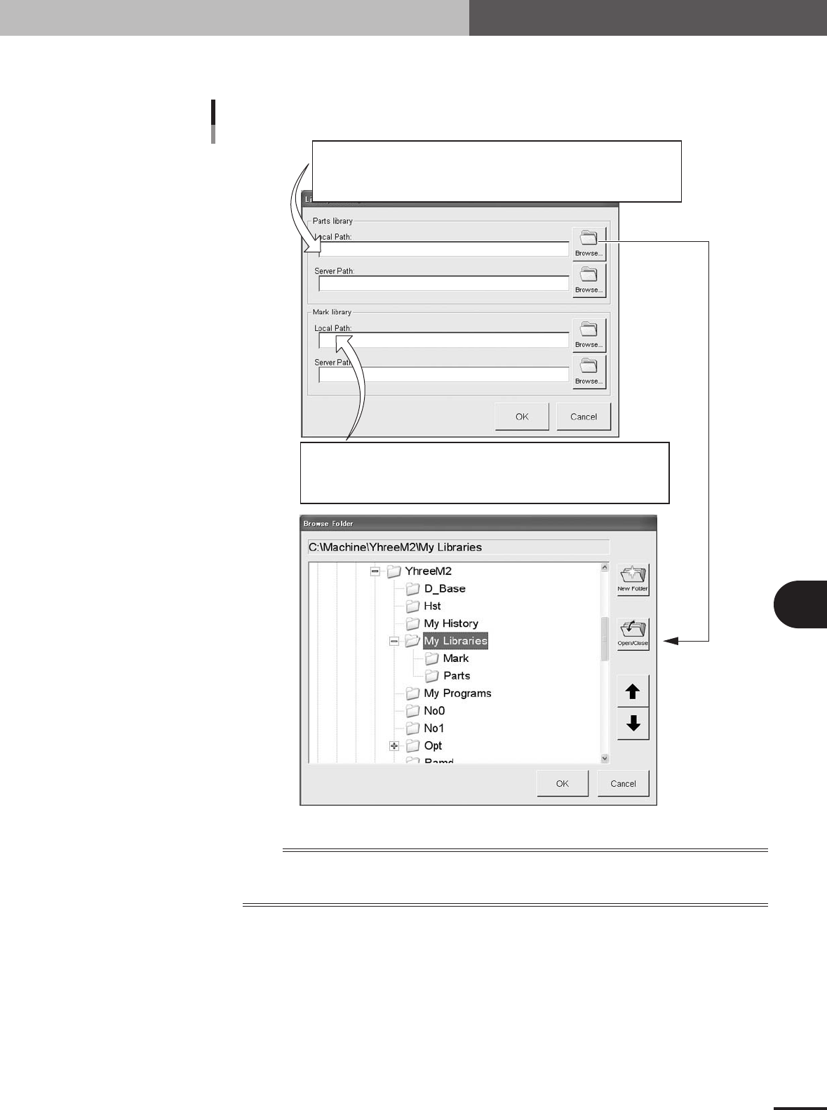 The following is an example for setting the library in the machine or on a PC connected