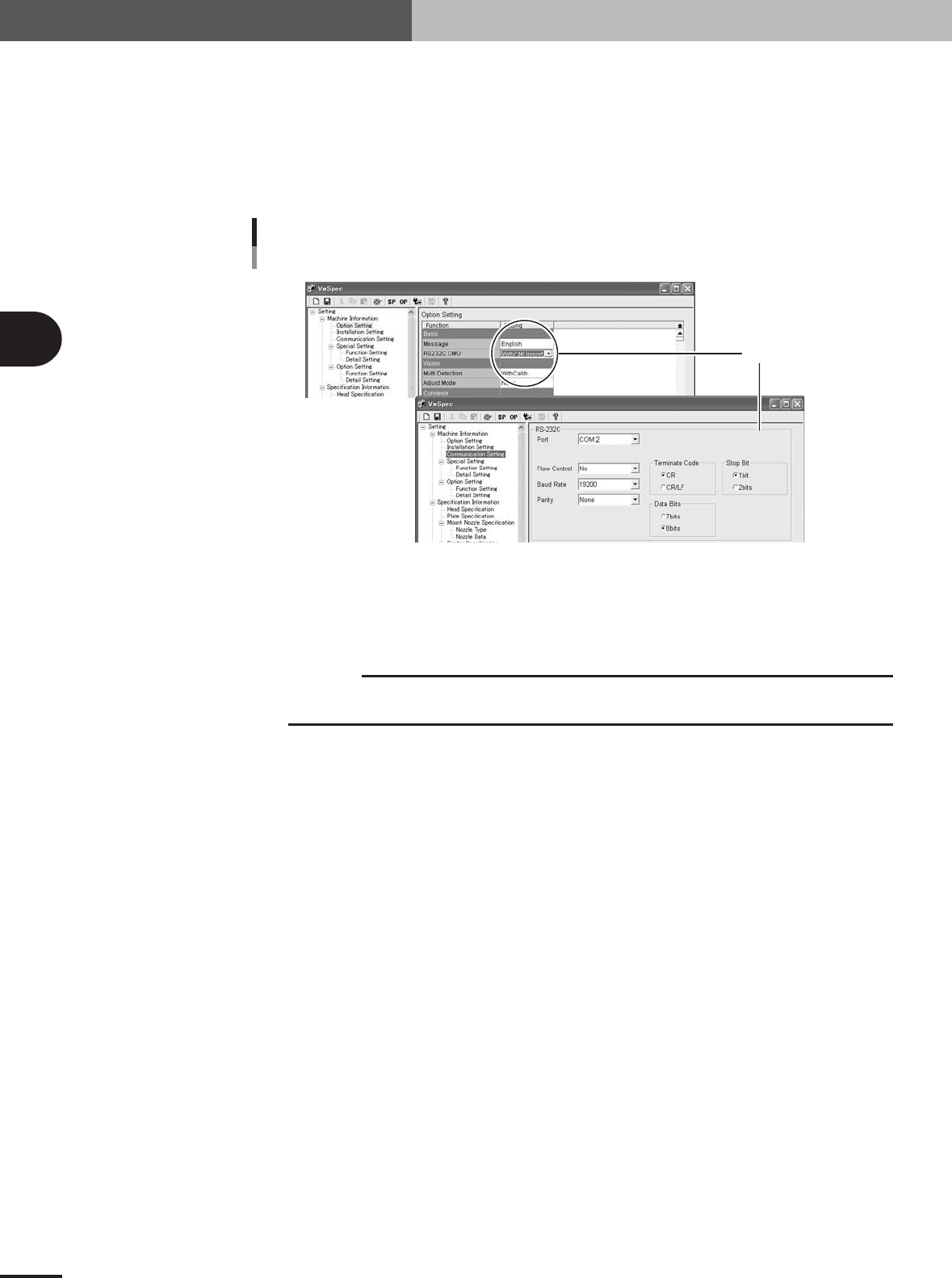 4.Make the settings in the RS-232C group box as shown below.