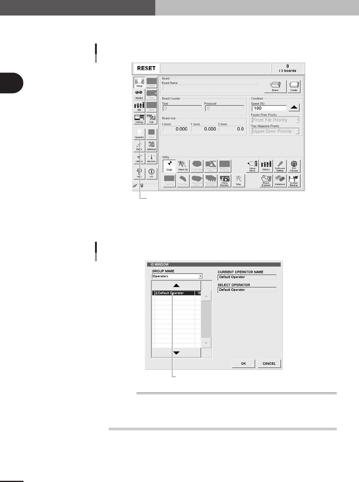 Operator" level is set to "Level 0" at the time of shipment to allow only basic operation items. This operation