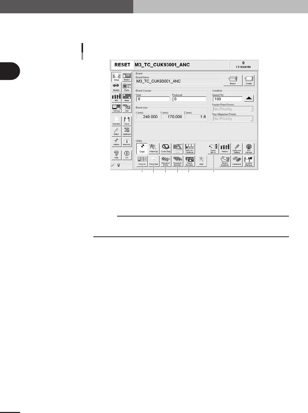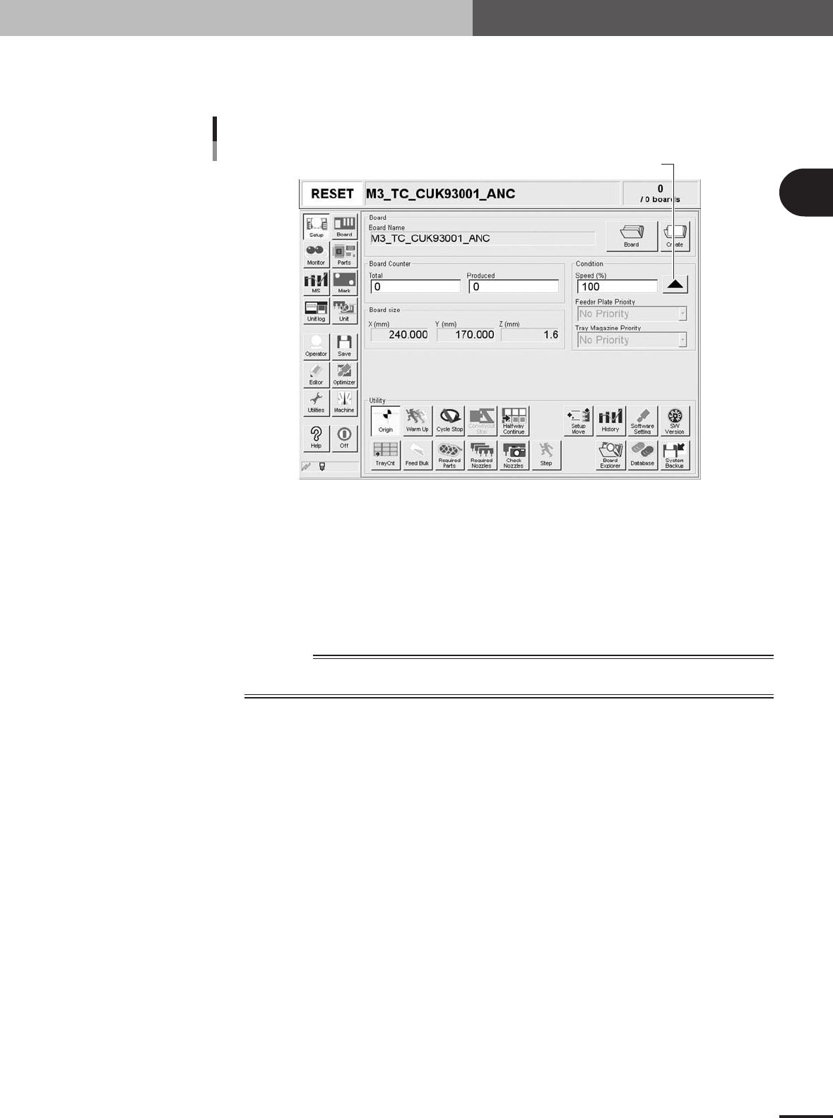 Displays the number of PCBs produced after changing to the current PCB data. The PCB data reset