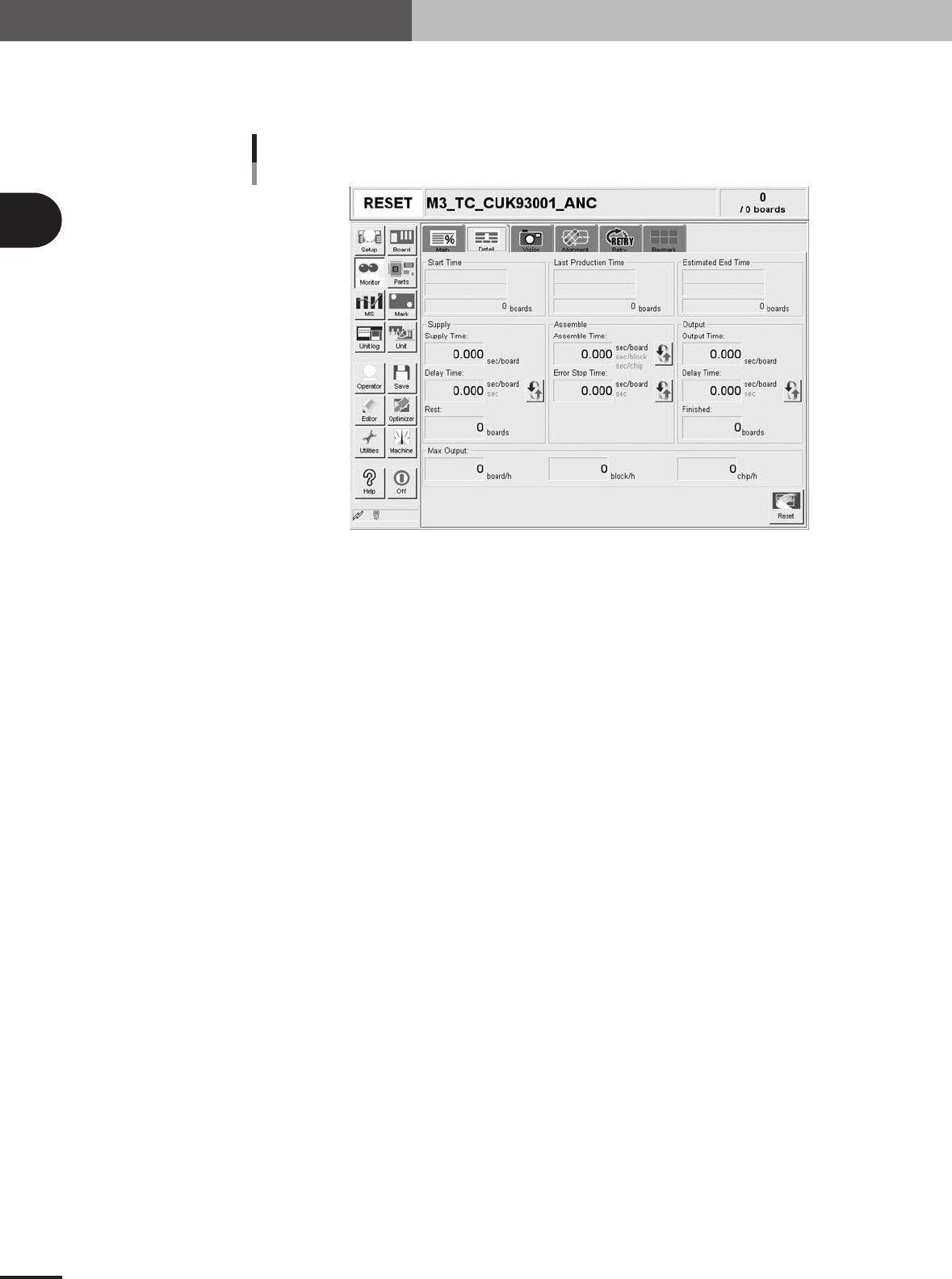on the screen. The "Board Counter" value on the [Setup] screen is also reset when this production