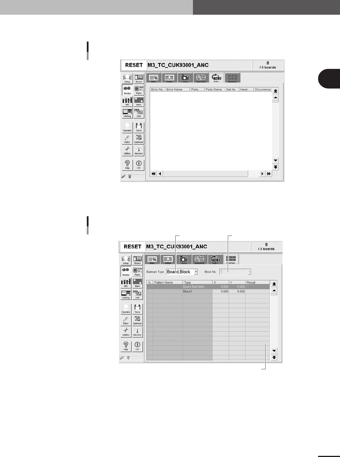 Badmark recognition results are shown on the [Badmark] tab during operation.
