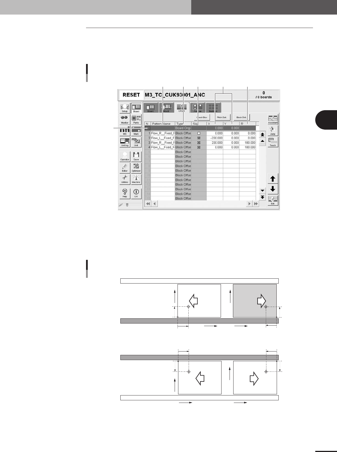 3 - 11 3 Creating the PCB data 3. Creating the PCB information 3.3 Offset parameters Selecting the [Offset] tab opens the screen for setting the offset data for each block relative to the reference block of a multi-block…