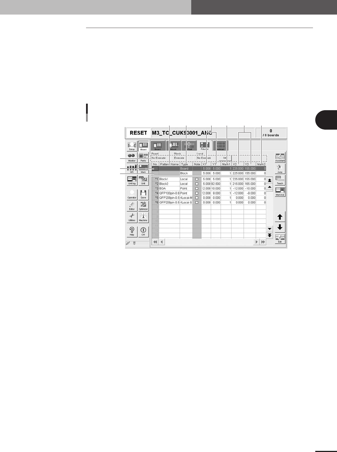On the top line of the parameter list, set the board fiducial mark data.