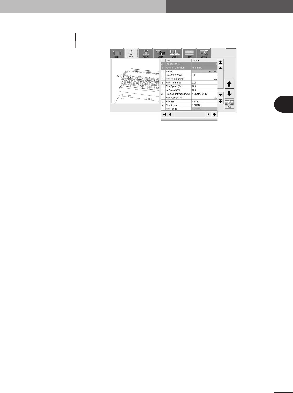 on the feeder. This setting determines the orientation of the component (recognition reference)