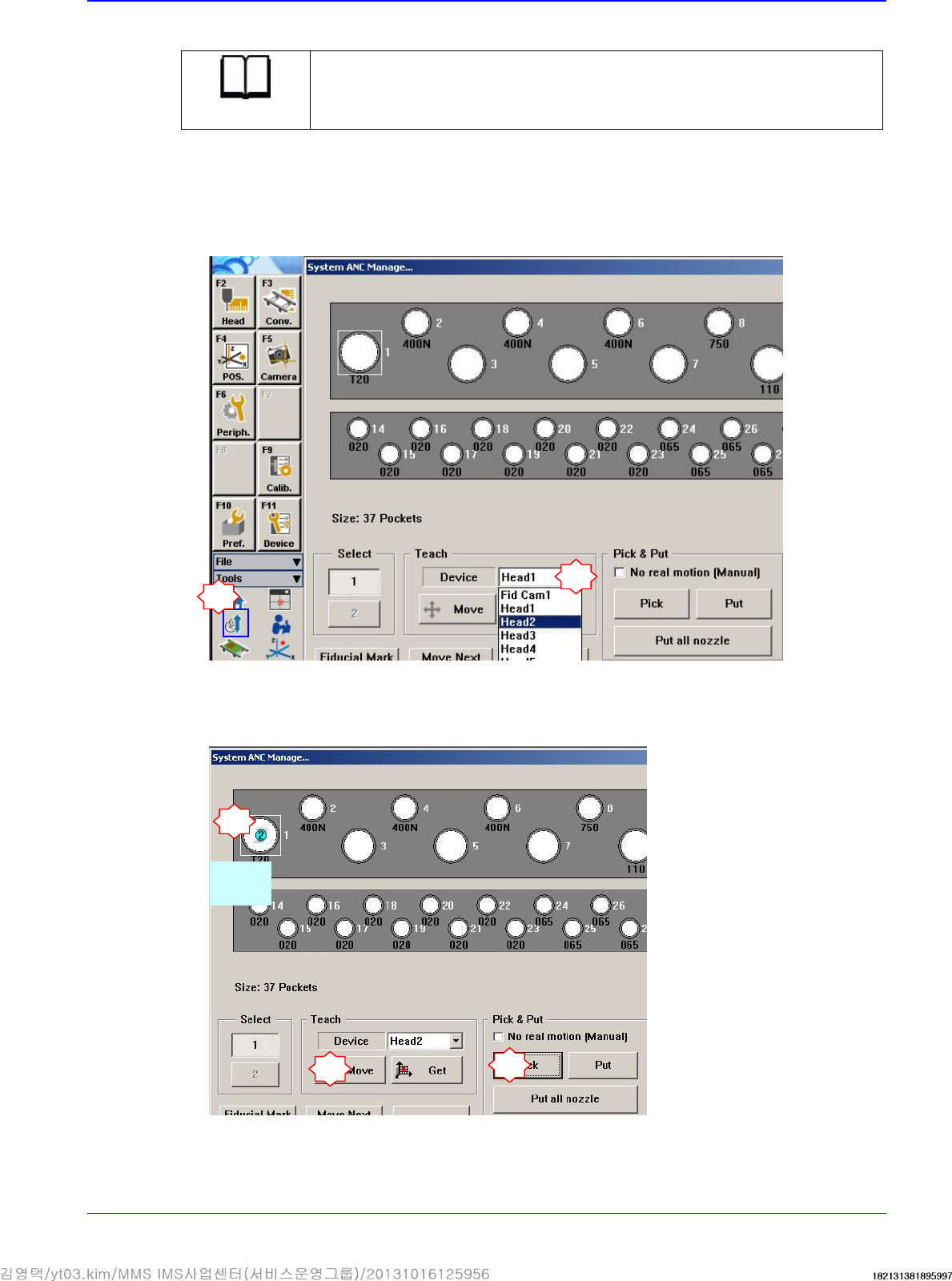 8. Insert the calibration tool (CNT20) in the nozzle-hoder of the head corresponding to the