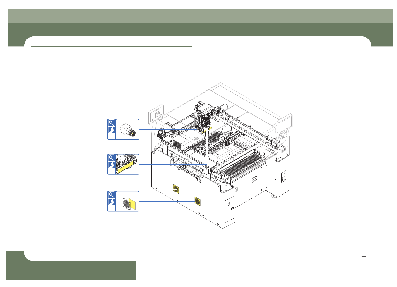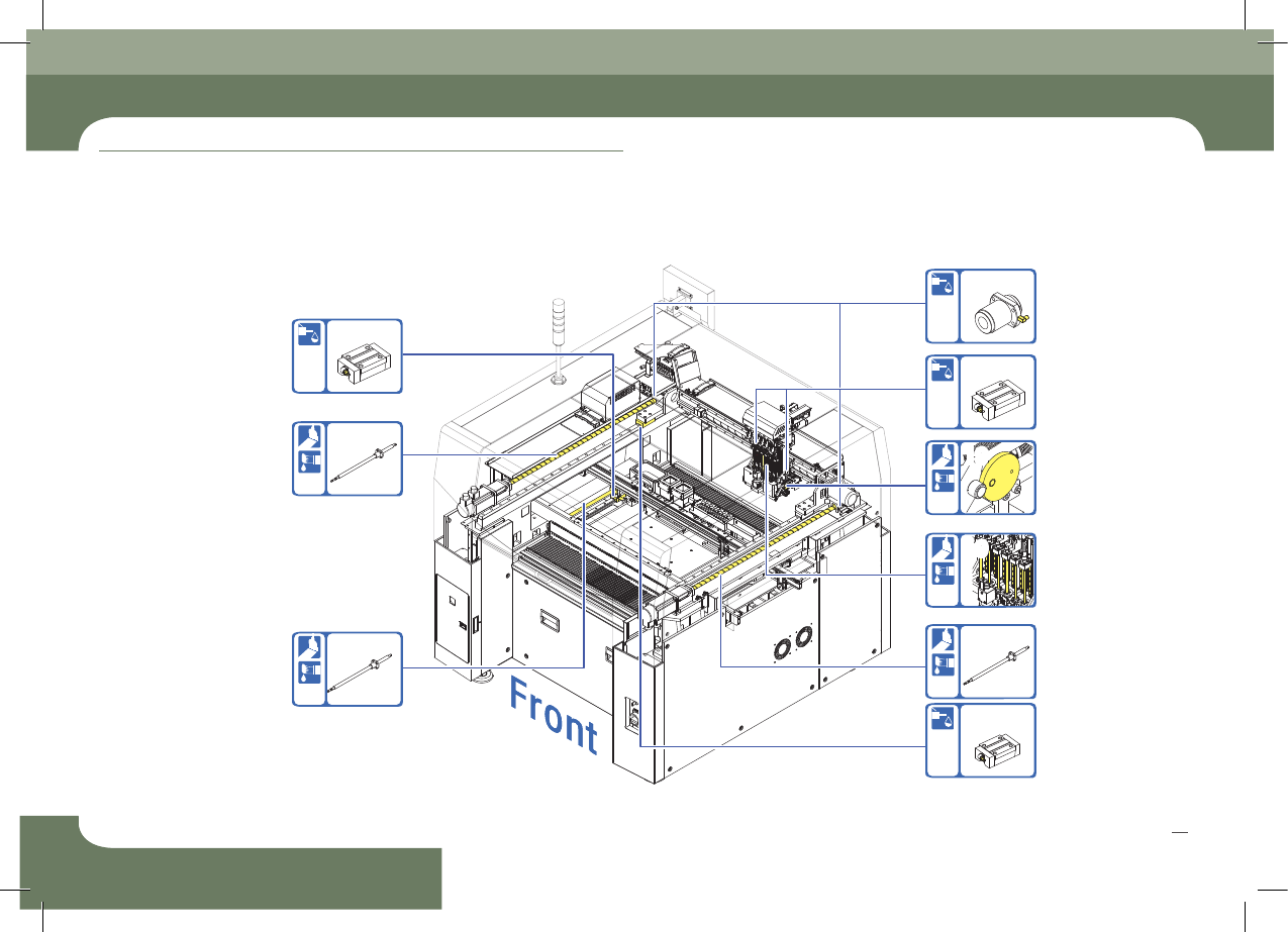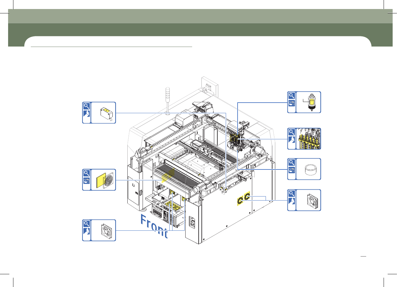 SM421 Maintenance Handb ook 20 Chap ter 2 Adva nced Fl exible Compon ent P lacer 15 18 13 12 16 14 14 17 维 修 检 验 事 项 4. 每 月 检验 目 录 (1 / 2 )