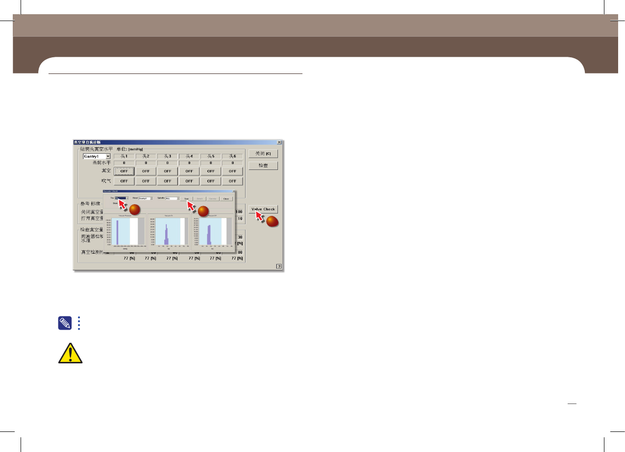 SM421 Maintenance Handb ook 40 Chap ter 4 Adva nced Fl exible Compon ent P lacer 3 5 4 每 周 检 查 4. 单击 <V alve Check> 键后 , 在 “V alve Check” 对话窗口的 <T ry> 组合框选择 V acuum ON/OFF 次数 , 然后单击 <T est> 键。 5. 检查结果为异…