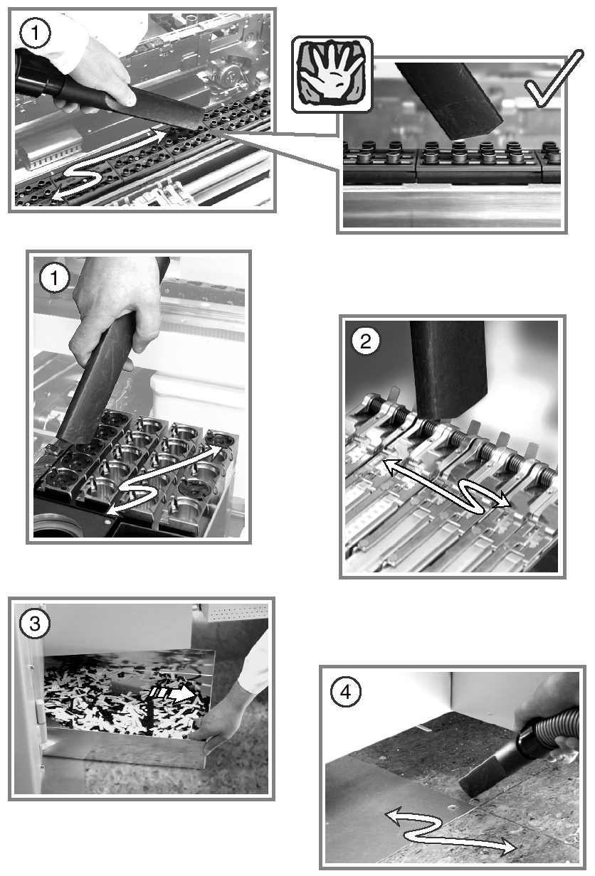 s Carefully clean around the nozzle changer and the feeder area with the vacuum cleaner. There