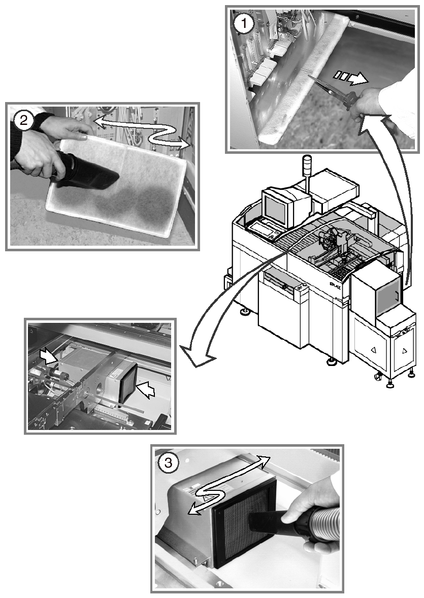 d Vacuum the filter mats for the control unit of the PCB conveyor.