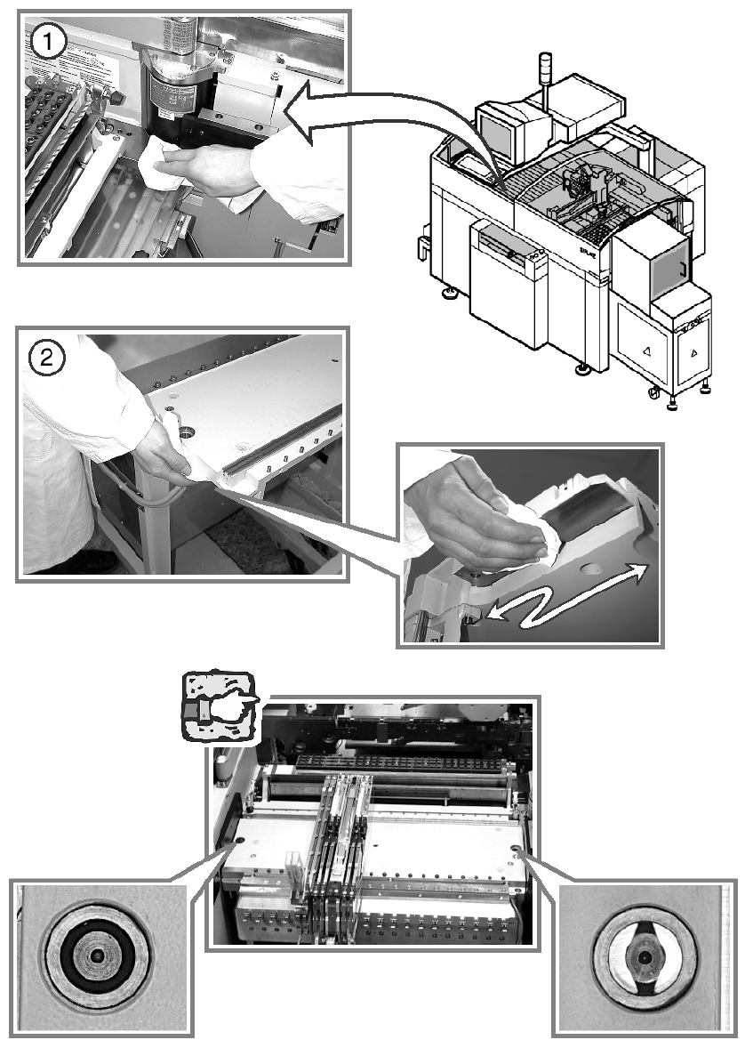 d Clean the linear guides thoroughly over their entire length using the SIPLACE cleaning tissue.