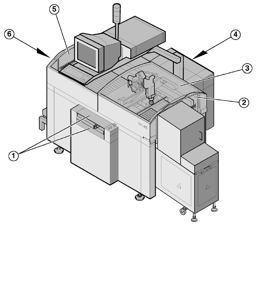 1. Protective cover on input conveyor 2. Safety window, right