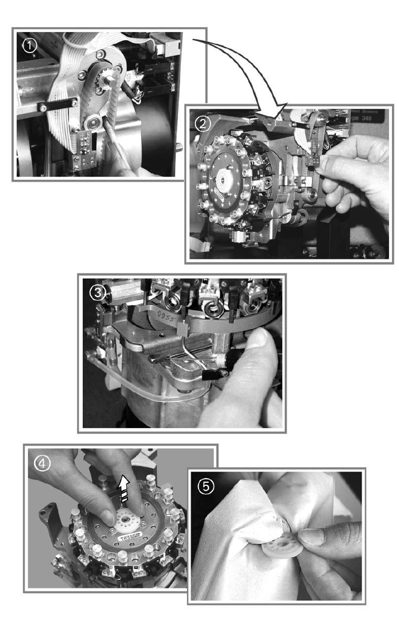 : Clean the rollers, toothed wheels and the toothed belt with a cottonwool bud or lint-free cloth