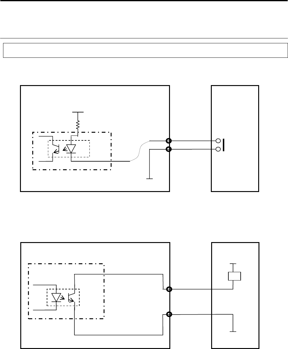 2.4 上下游 I/F 2- 13 2.4.3 输入输出内部连接 输入模式 流经该装置内的非接触 式继电器的最 大电流为 10mA 。 注: IN -COM 是上下游所有输入的公共端。 输出模式 上下游装置最大流经电 流为 500mA 。 注: OUT-COM 是各输出单独的接地点。 该装置 上下 游装置 输入部分 IN IN_COM ※ GND 24V 上 下游装置 输出部分 OUT OUT_COM ※ VCC 负载