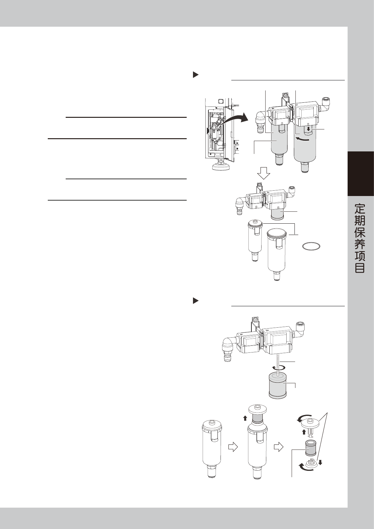 下面,介绍这些过滤器的点检、清洁与滤芯的更换方法。为保障作业安全,请务必先拆下与气源连接的空气连接器。