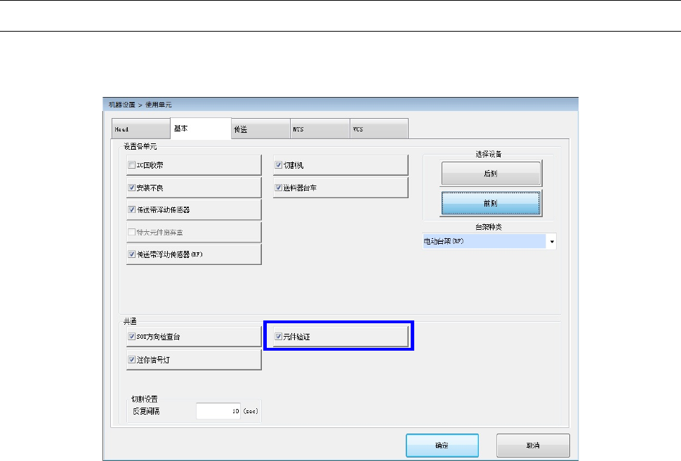 从机器设置画面选择[使用单元]—[基板],确认「元件验证」已经勾选。