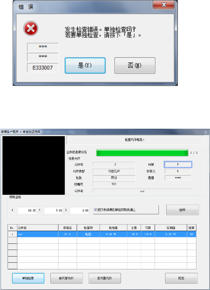 选择<是>,按下[单独检查]按钮后,即进行单独检查。