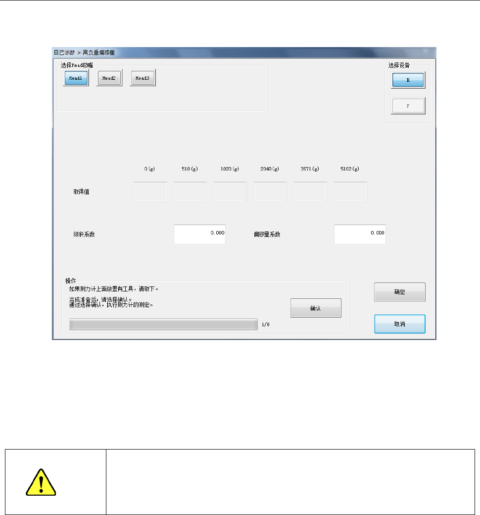 选择 Head 吸嘴后,按下确认按钮,即开始取得高负荷控制偏移量。