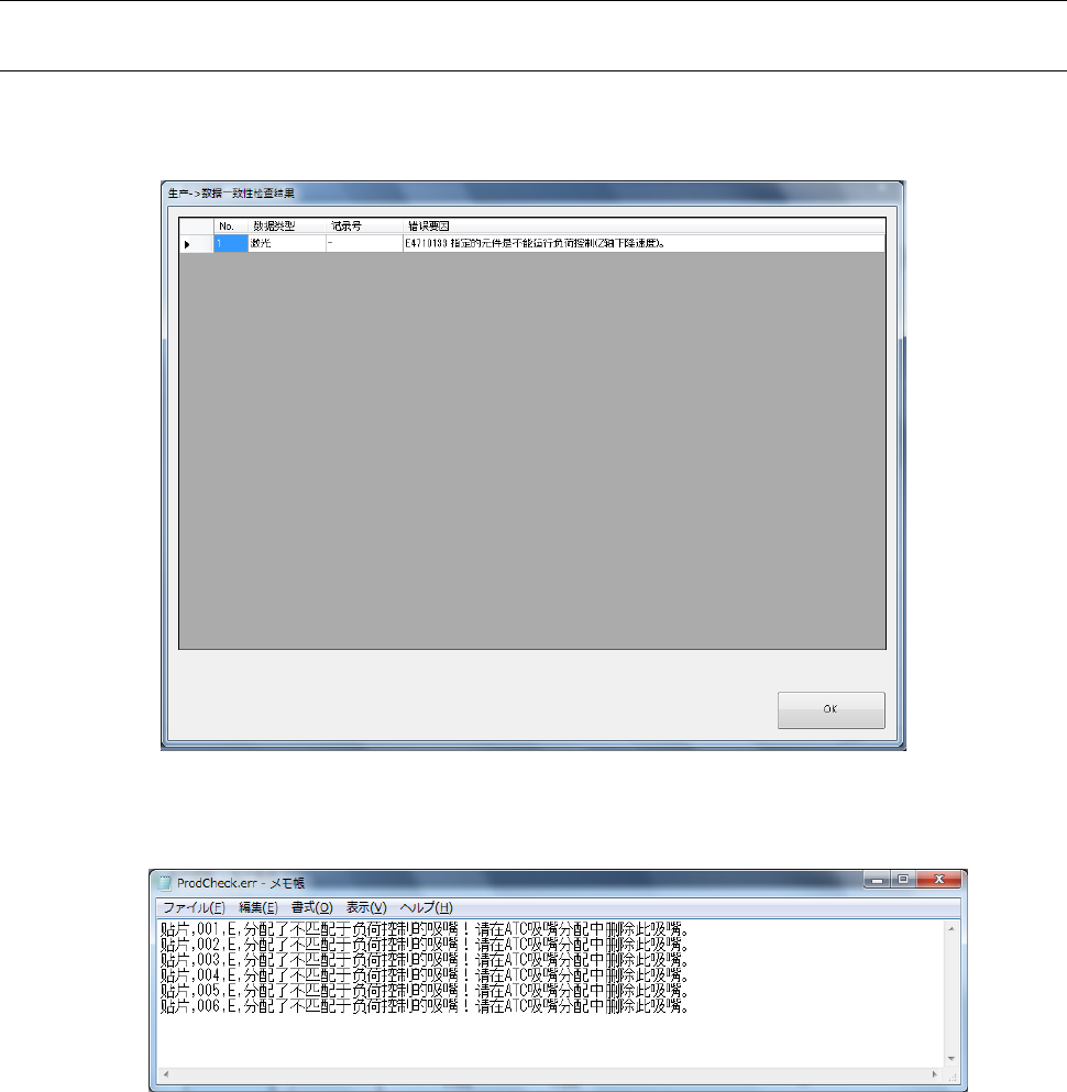 第 2 部 功能详解篇 第 12 章 选项组件 12 - 83 12 - 11 - 6 生产 12 - 11 -6- 1 生产开始时 的错误 处理 Z 轴下降速度 不是 FC 速度 , 推进量 为 负荷 输入 ( g )时, 生产开始前 的检查时会发生错误 。要进 行负荷控制 时,请将 Z 轴下降 速度改回 FC 速度。 在吸嘴分配时的 负荷吸嘴 检查中, 使用滑动状态 为 NG 的吸嘴进行生产 时,会发生错误 。 请使 用滑 动状态为…