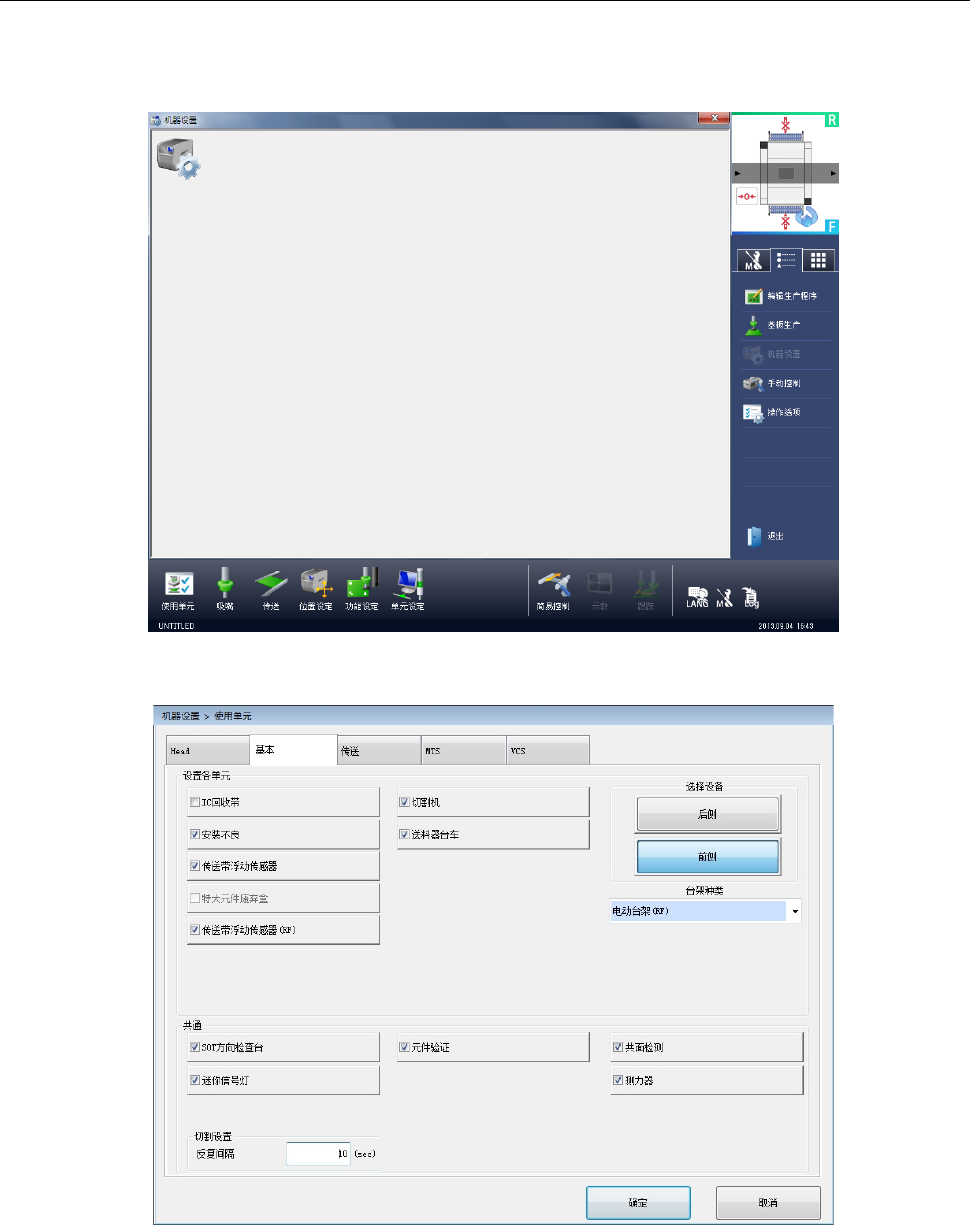 第 2 部 功能详解篇 第 12 章 选项组件 12 - 91 12 - 12 - 4 机器设置 进行 共面性 检查时,必须 进行 「机器设 置」 的设定。 请启动「机器设 置」 。 1) 从机器设置 画面 菜单选择 [ 使用单元 ] - [ 基本 ] 。 选择 勾选 [共面检测 ]。 勾选后即设定为 使 用。