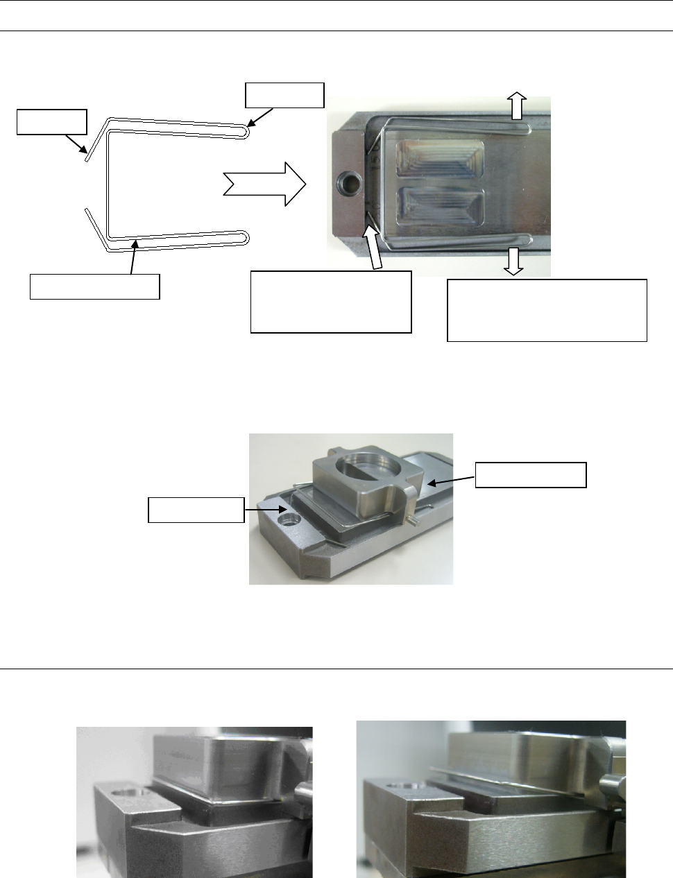 ② 将助焊剂刮刀的后端部沿着箭头的方向张开,放入沟槽内。