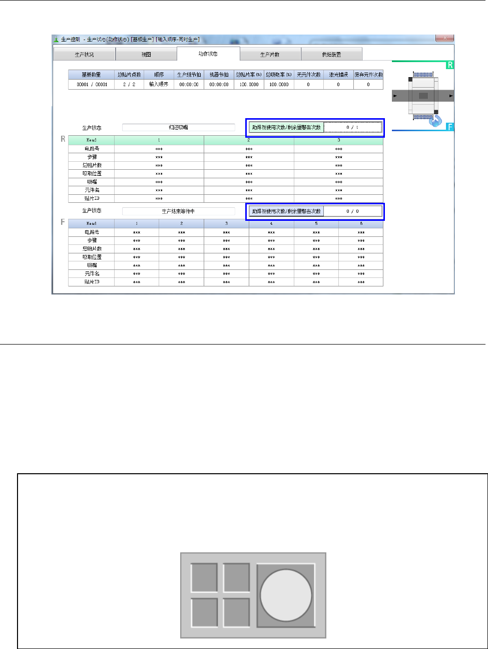 在生产执行画面中,可确认「助焊剂(转印装置)使用次数」及「(转印装置)剩余量警告次数」。
