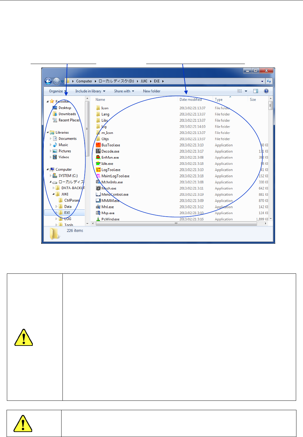 第 1 部 基本篇 第 1 章 装置概要 1- 96 1-9- 9 文件管理 使用 Windows 的资 源管理器功 能,进行文件 管理操作 。 可以进行文件夹 的建立、删除,文件的建 立、删除。 ( 1) 启动资源管理器 按下「开始」 / 「文件管理 ( Explorer) 」即可启动资源 管理器。 ( 2) 资源管理器的画 面构成 在左侧显示层级 结 构。 右侧显 示左侧 选择的文件夹内 容。 ( 注 ) 使用的是 W indows…