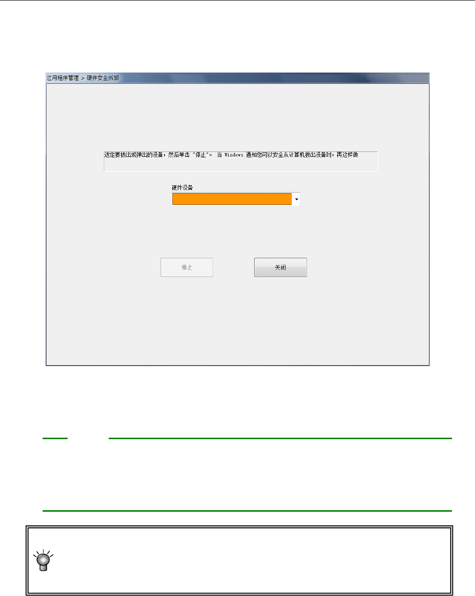 (1)在[开始]菜单中选择[硬件安全拆卸]后,显示如下[安全删除硬件]对话框。