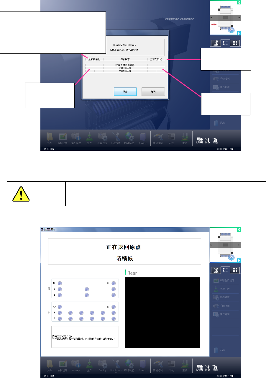(4)执行中,会显示返回原点画面。