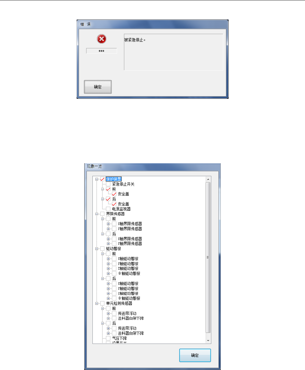 打开安全盖(安全罩)、按下紧急停止开关、或检测到各轴的伺服驱动的警报等时,会显示如下画面。