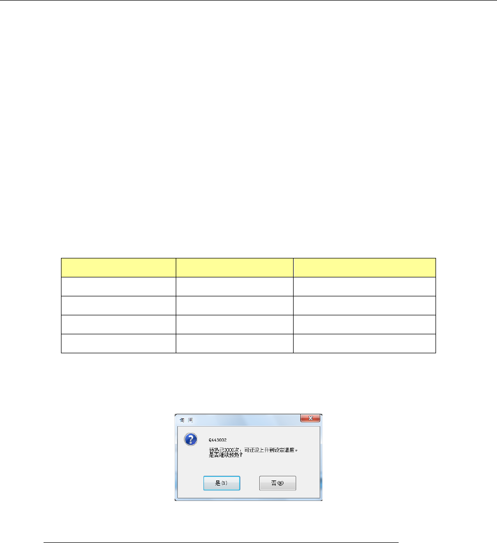 达不到所设置温度时,每进行 3000 次预热操作,会显示询问是否要持续进行预热操作的画面。