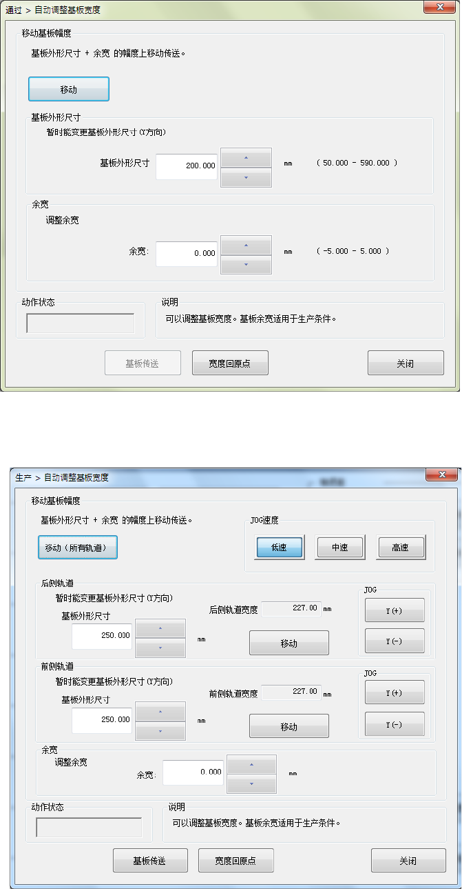 按[移动(所有轨道)]按钮可调整基板宽度。