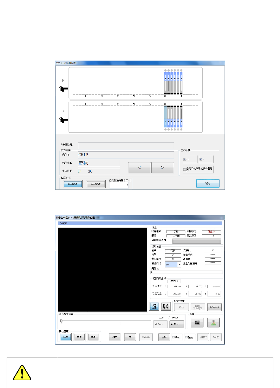 第 1 部 基本篇 第 2 章 生产 2- 33 2-7- 2 元件供应部分的准备 请在统一更换台 车、或固定的台架上安装 供料器。 安装后,请进行 吸取跟踪。 <步骤> ① 请从生产菜 单选择[支援准备] 。 请按下[ 送料器 设置]按钮。 显示以下的 送料器设置画面。 ② 请按下[吸 取跟踪]按钮。 显示以下的摄像 机跟踪吸取位置画面。 注意 在打开吸取跟踪自动传送画面之前,轴会移 动。在执行前,请务必确 认设备内 部没有人在进行作…