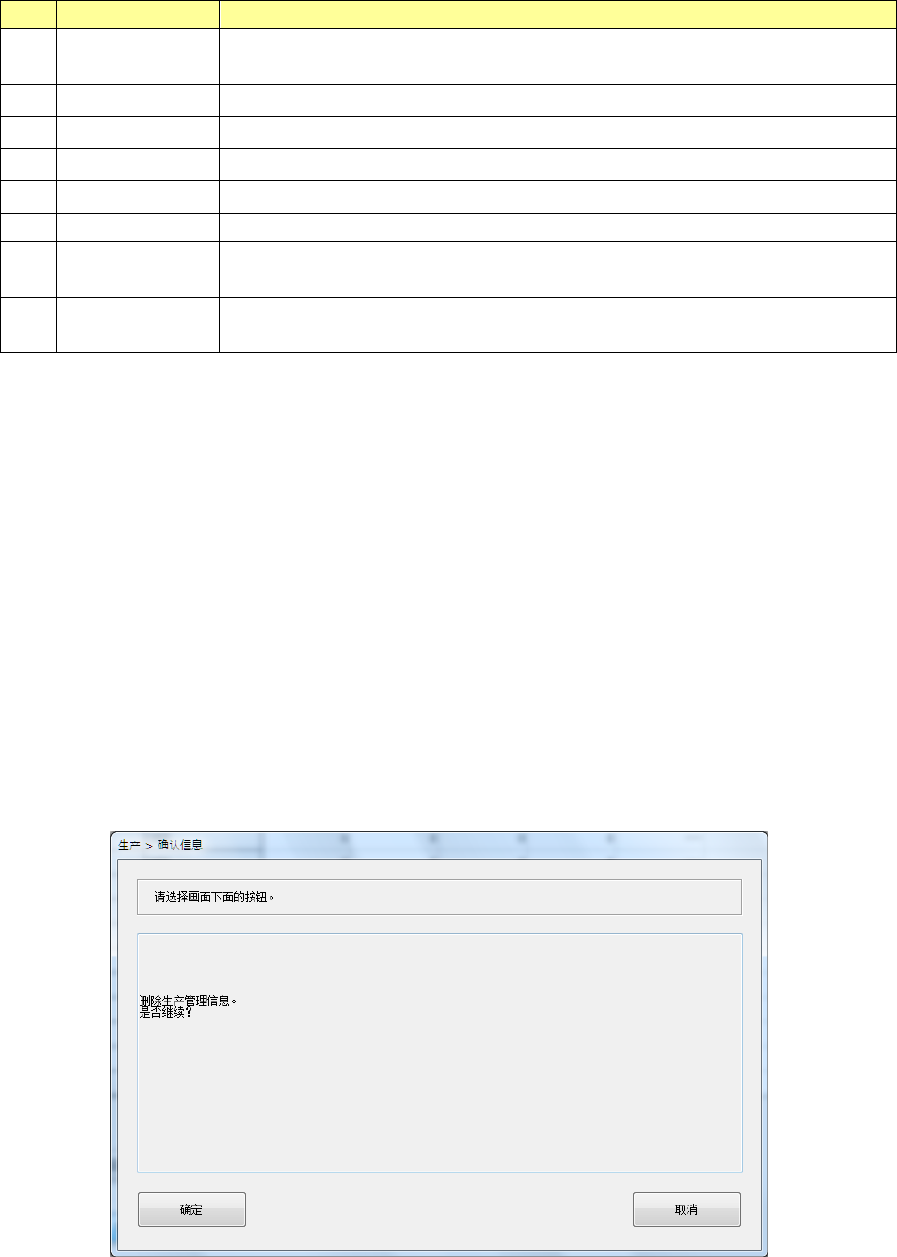 按下[取消]按钮,则不删除生产管理信息。