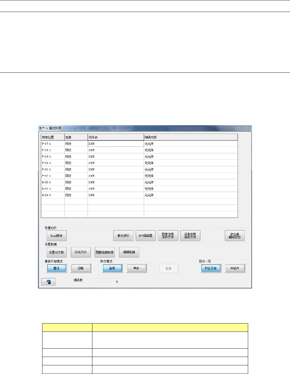 选择显示一览后,列表的内容将变化显示出供应装置的重试错误、以及因未贴片导致的重试错误。