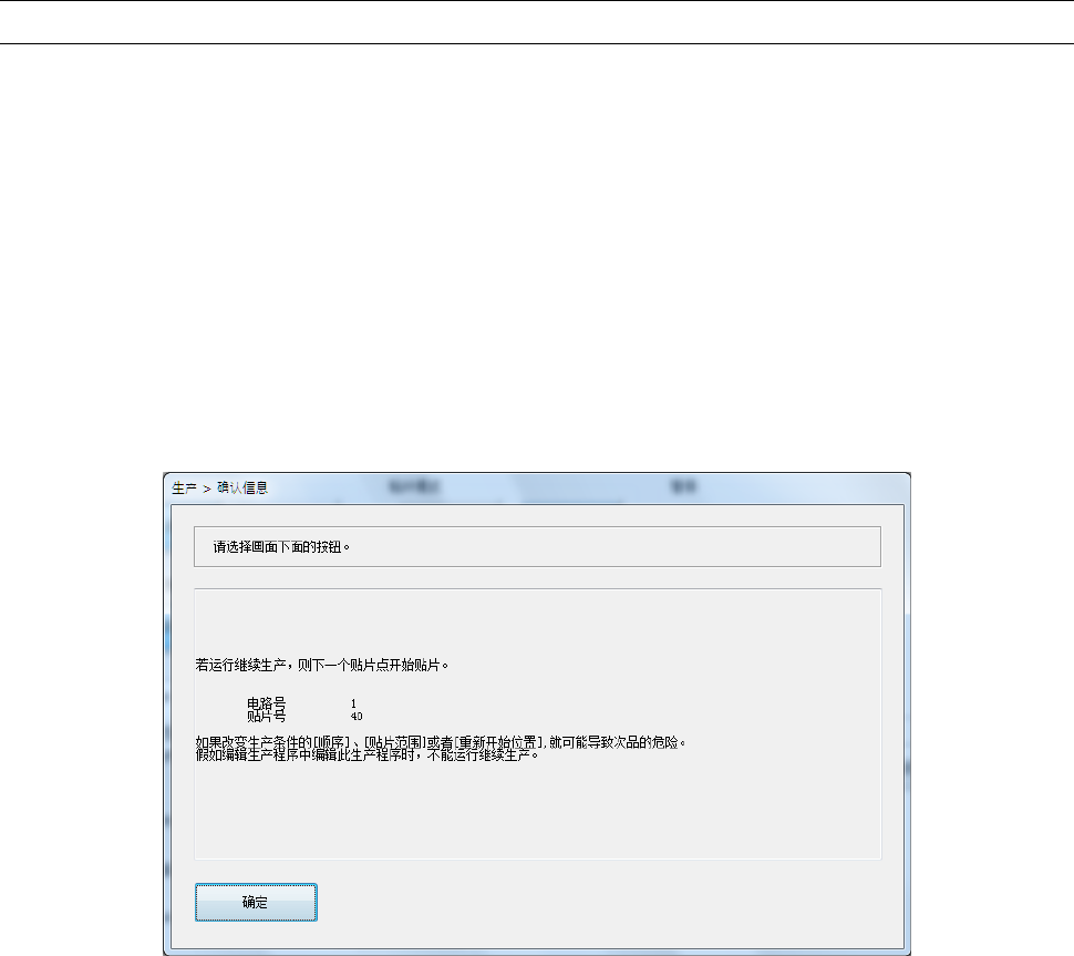 生产异常终止时,会显示询问生产重新开始位置的提示信息。