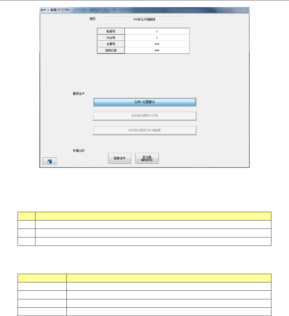 因台架标记识别错误以外的标记识别错误而暂停后,只能选择[再识别]。