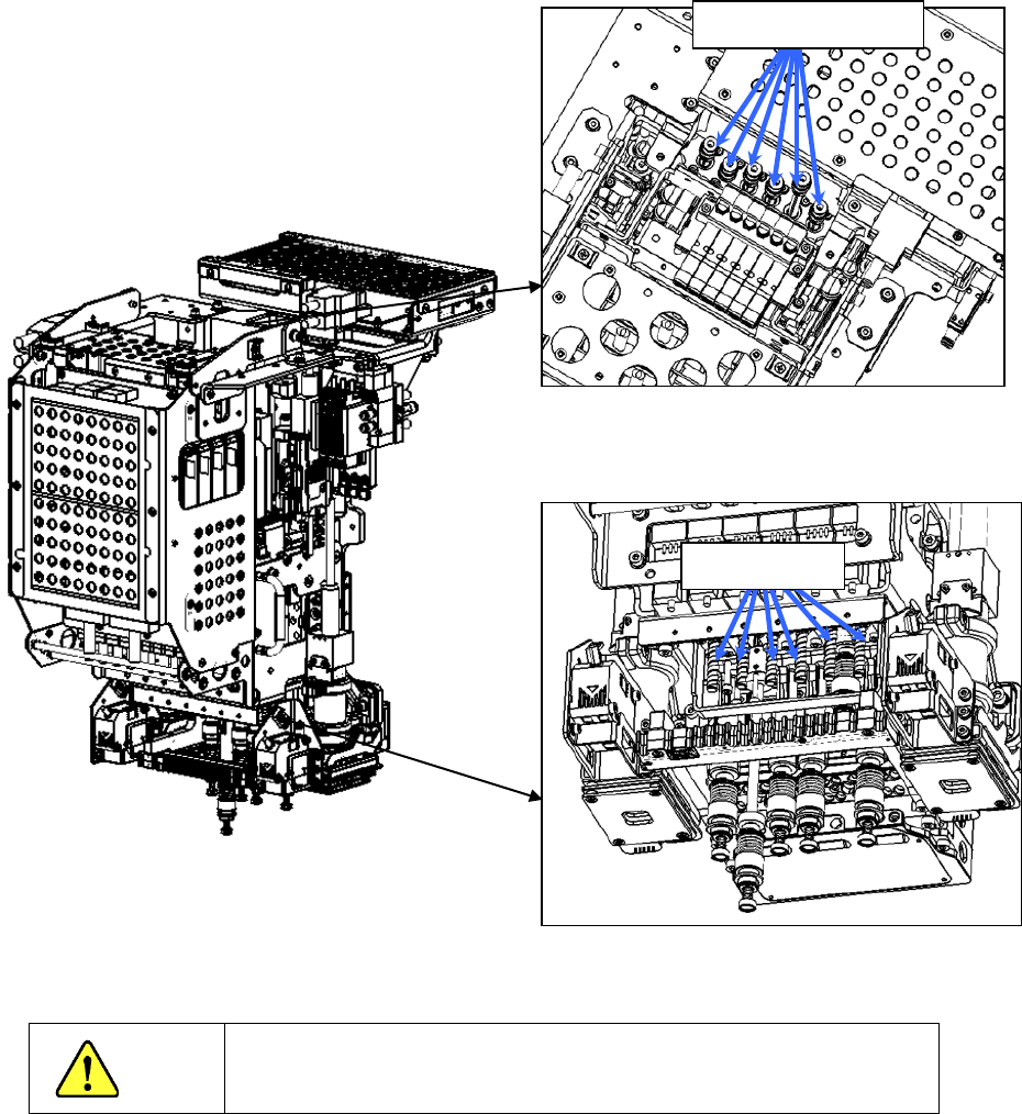 操作手册 I 3- 35 1 ) 通过 「手 动控制」 使 支撑台 上升,从 两侧在滚珠 丝杠轴 4 个位置全面涂抹上 润滑油。 双通道传送的支 撑台没有注油位置。 注油项目 3-3- 10 支撑台(单通道规格) 实施频度 : 2 个月 使用 工具 :毛刷 使用 润滑油 : 6459 润滑油 N 支撑台 滚珠丝杠