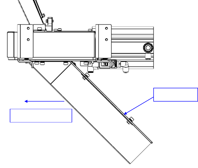 12)请安装供料器台架(台架上升状态),调 整 上部排出轨道的排出轨道板与固定块的间隙为 0.5~