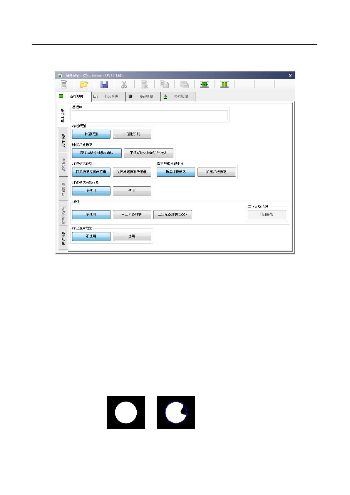 第 1 部 基本篇 第 4 章 制作生产程序 4- 10 ◆ 二值化识别: 当多值识别发生 错误时,请选择二值化识 别。 但当标记边界拍 摄不清晰时,其精度要低 于多值识别。 3) 球状坏点 标记(全坏板 标记) 设置检测出全 坏板标记时是否进行坏板 标记识别。 4) 坏板标记 种类 设定检测出坏板 标记时的贴片动作。 ◆检出标记时不 贴片: 如果检出标记时 不进行贴片动作,请选择 此项。 ◆检出标记时贴 片: 如果检出标记时 要进行贴…