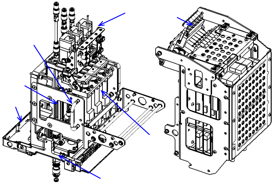 Head 由检查元件位置偏移、角度偏移的激光传感器,以及可上下驱动、旋转动作的 Z 滑动轴构成。