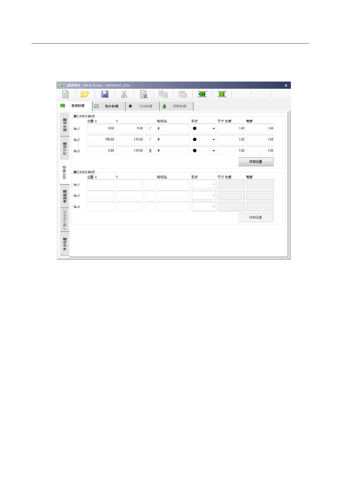 输入 XY 坐标后,要设置标记名、形状、尺寸长度·宽度,变为准完成状态。