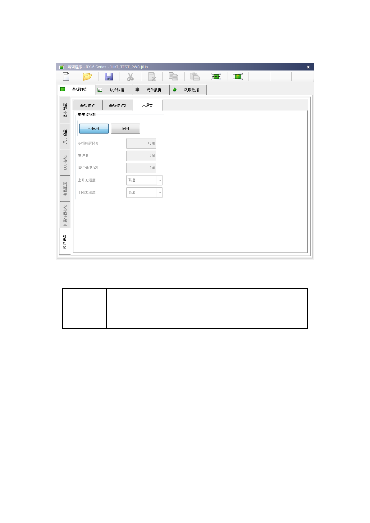 在选择「传送设置」选项卡的状态下,选择「支撑台」选项卡时,会显示如下画面。