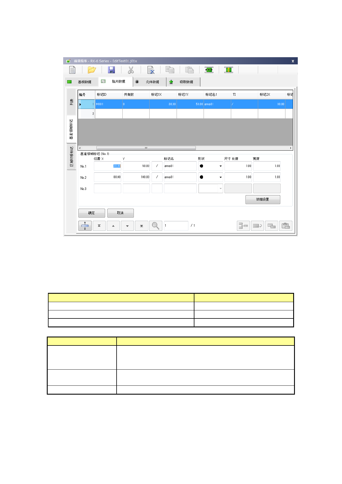 在注册标记时,将光标移动到未输入的行,输入标记的X坐标、Y坐标后,通过标记示教,或从