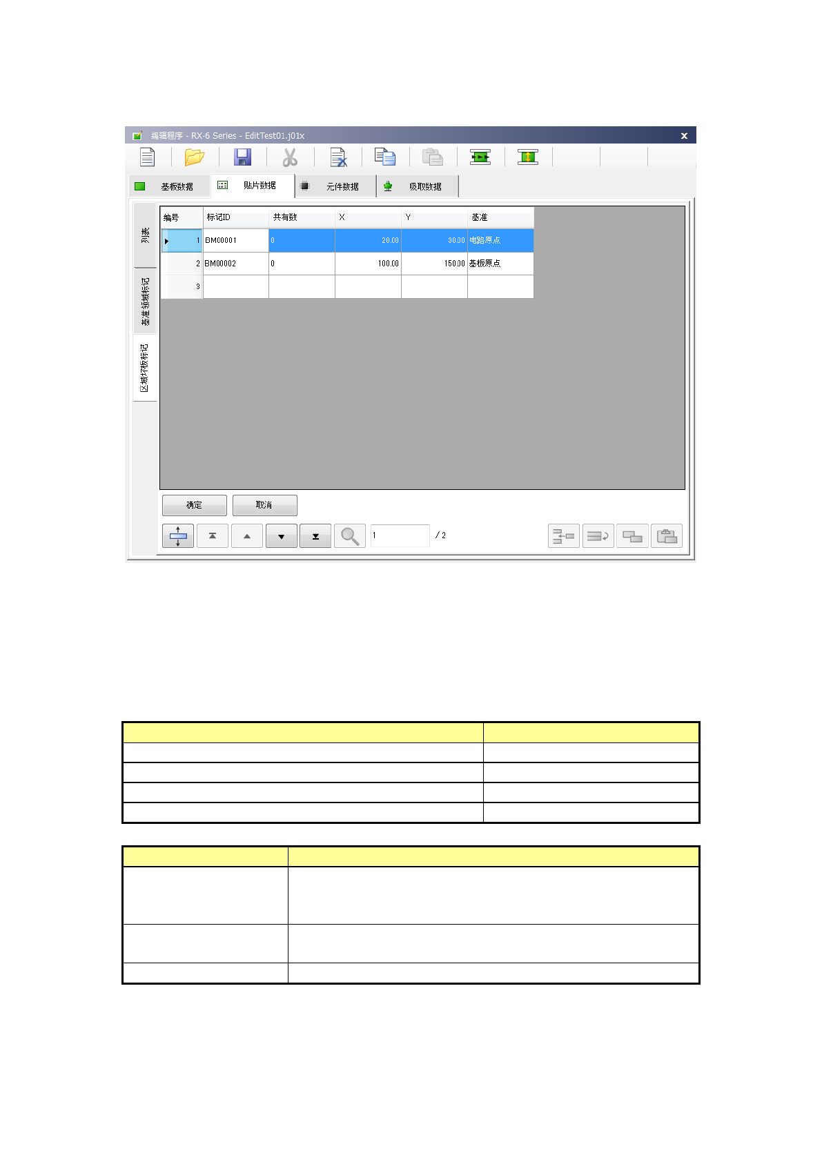 要注册新的标记时,使光标移动到未输入的行,输入标记的 X 坐标、Y 坐标、基准。
