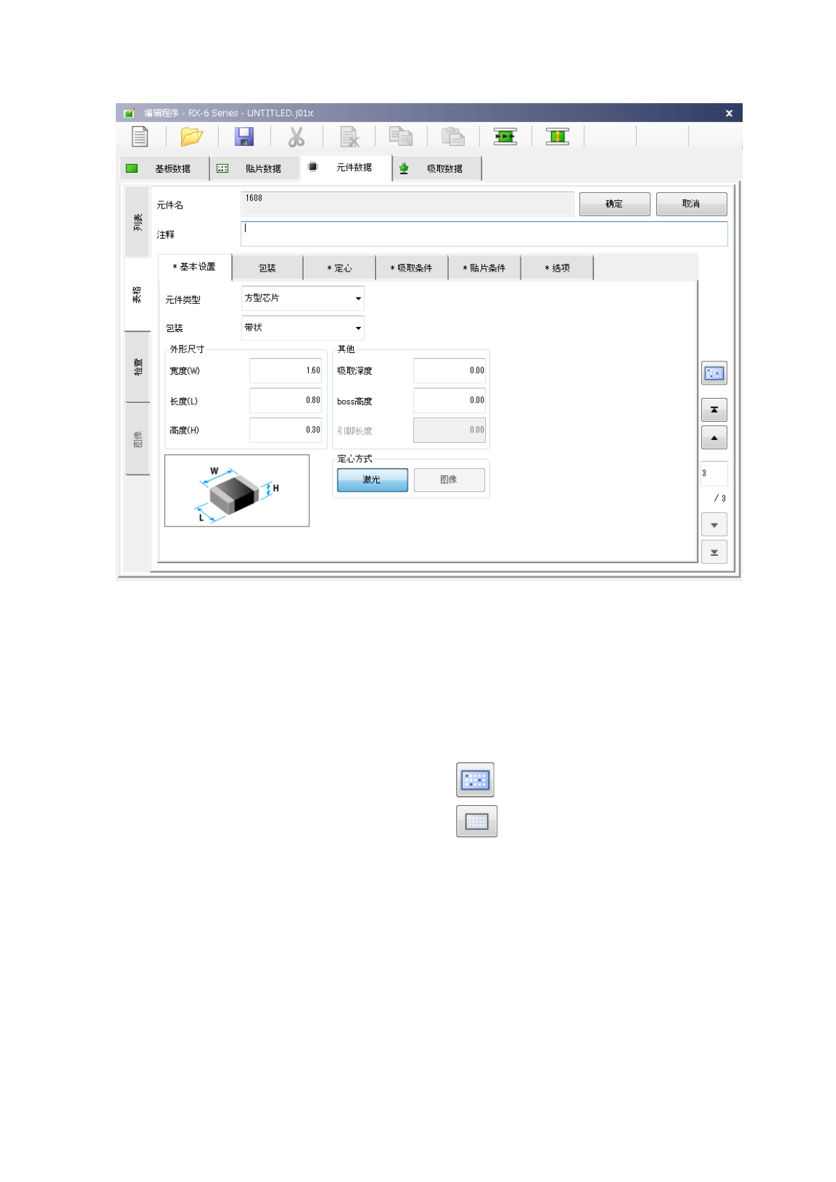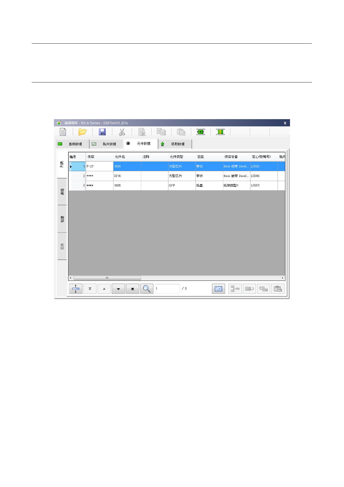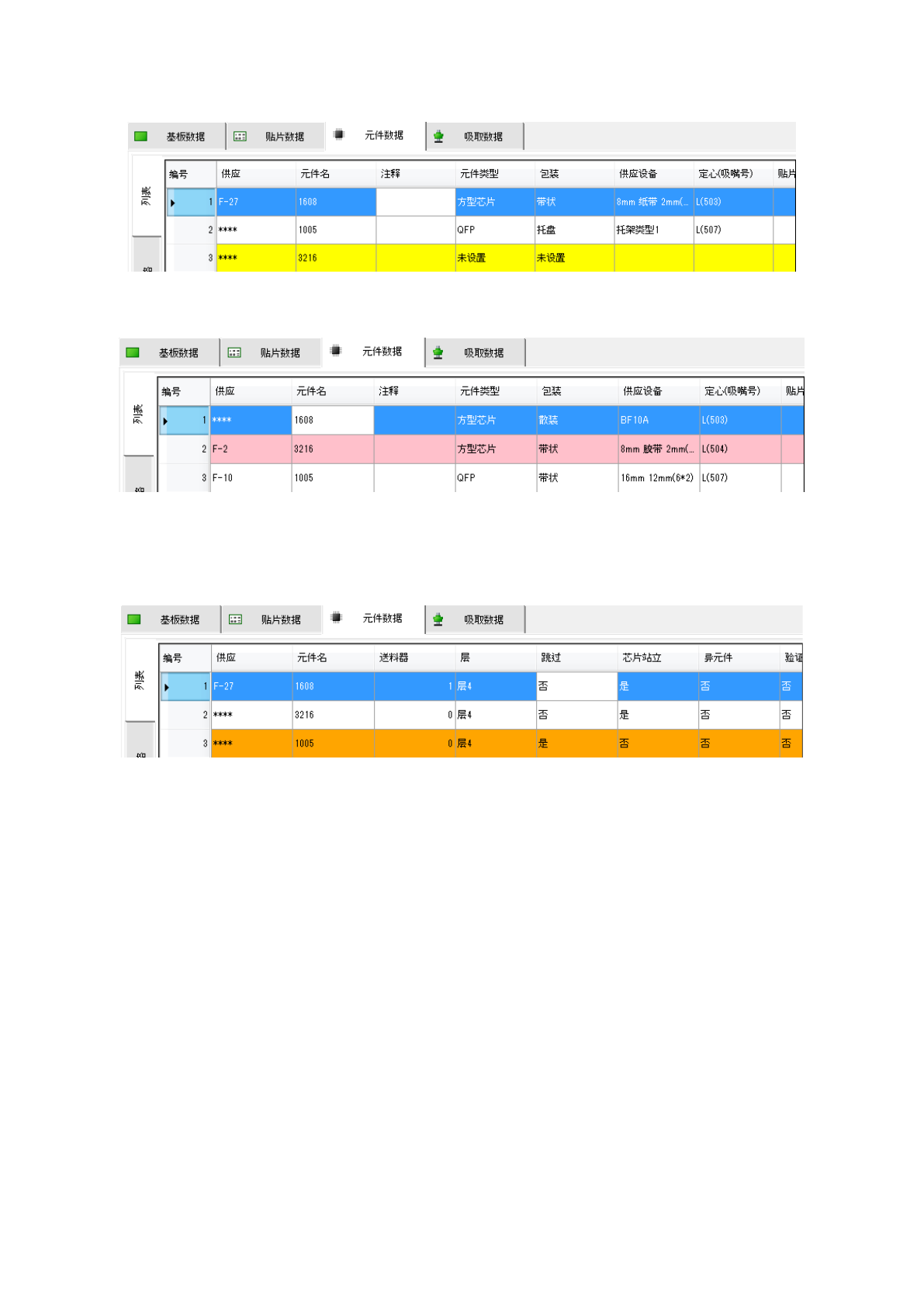「元件数据」,是针对在「贴片数据」中输入的“元件名称”输入详细的信息数据。